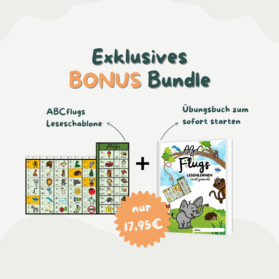 Beim Kauf deiner Lese-Schablone erhältst du ein digitales Übungs-PDF gratis dazu. Damit kann dein Kind direkt loslegen – ganz ohne Vorbereitungszeit.